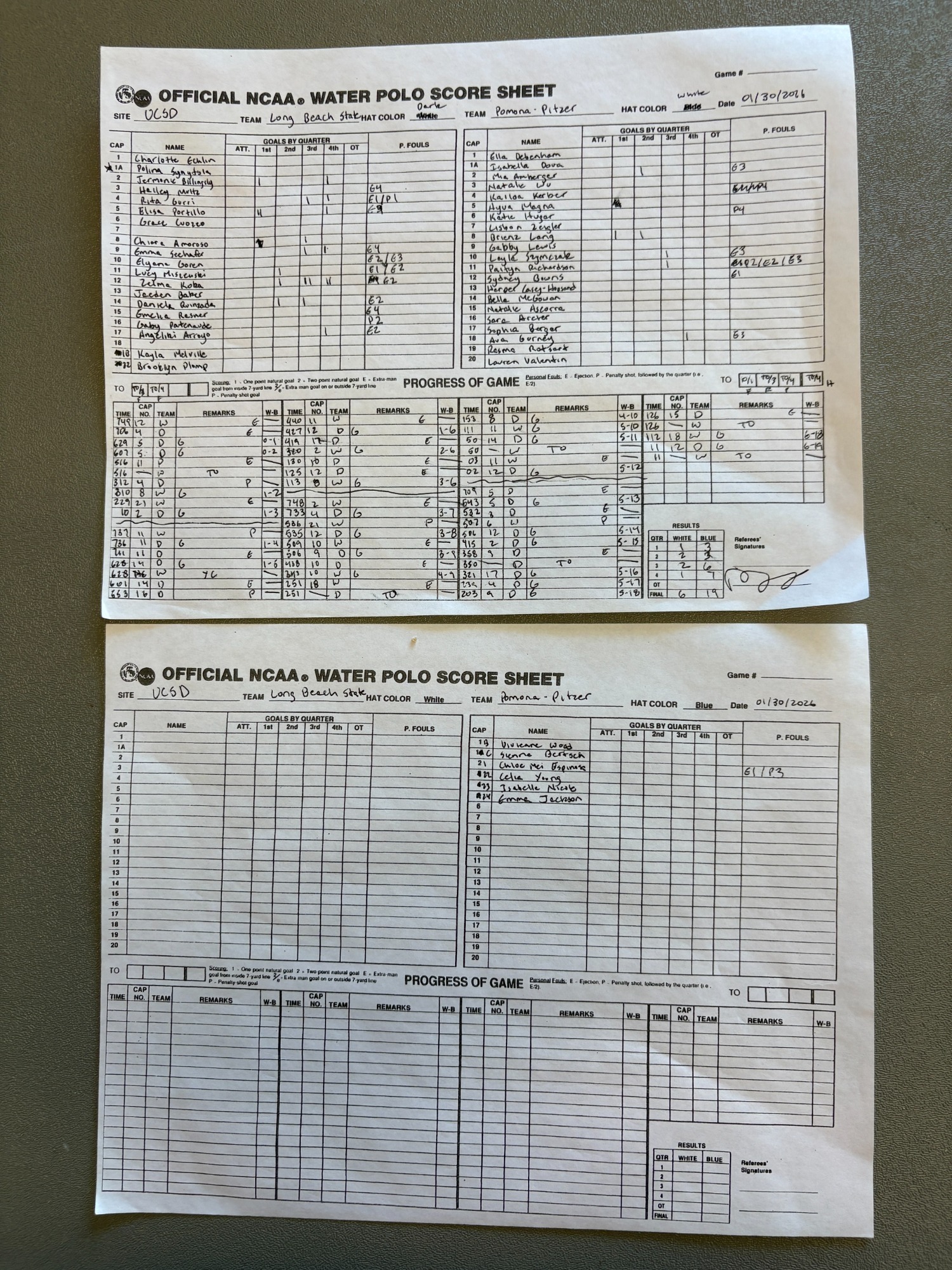 12 PM 4: Long Beach State 19 vs. Pomona-Pitzer 6 Scoresheet
