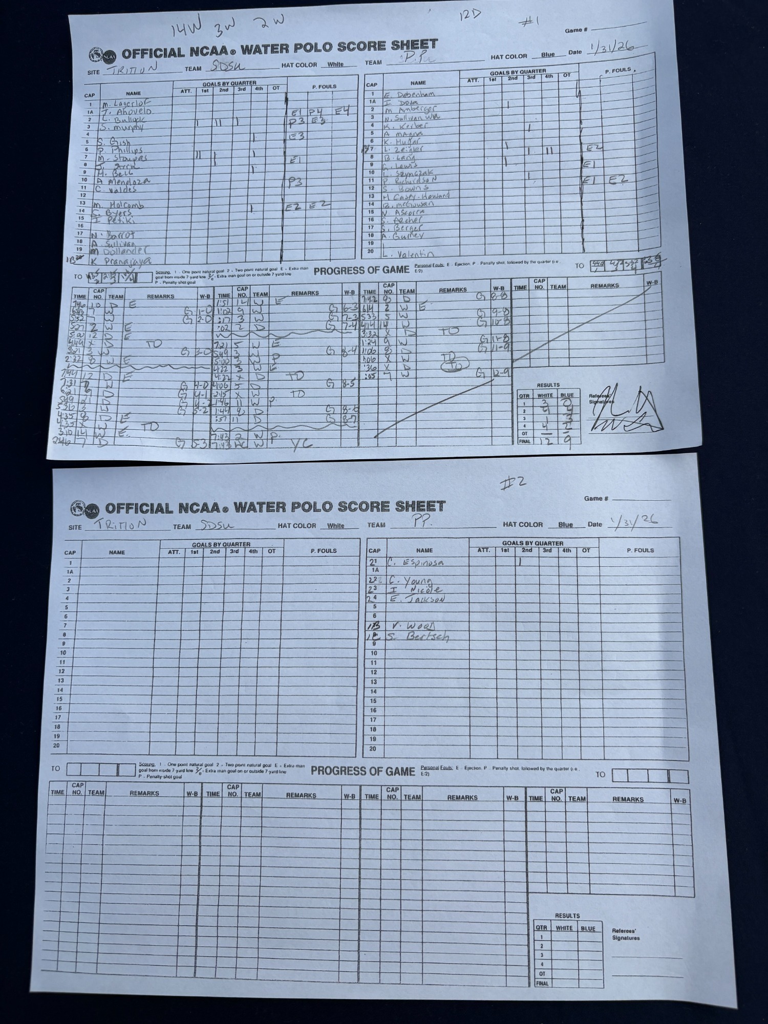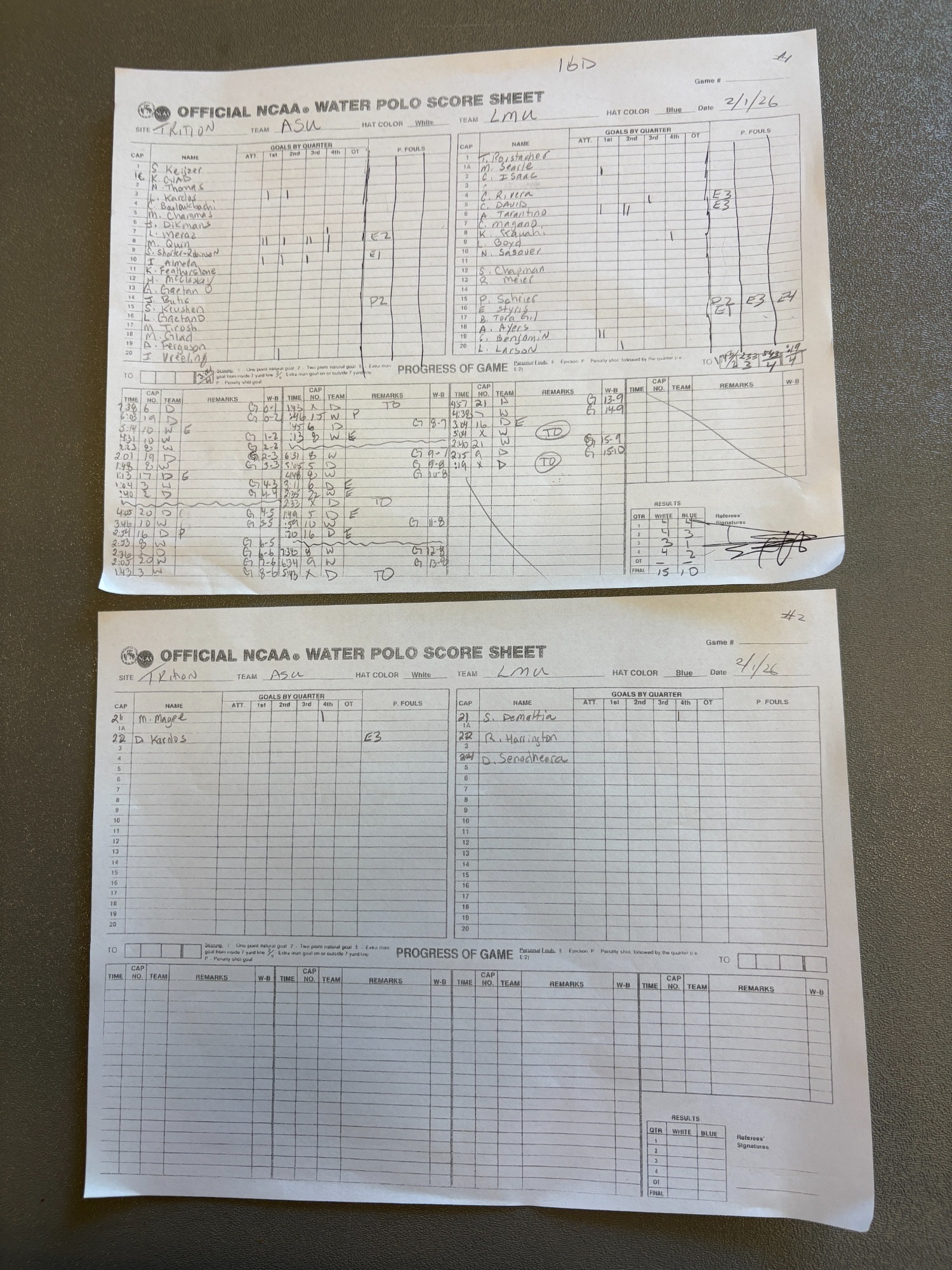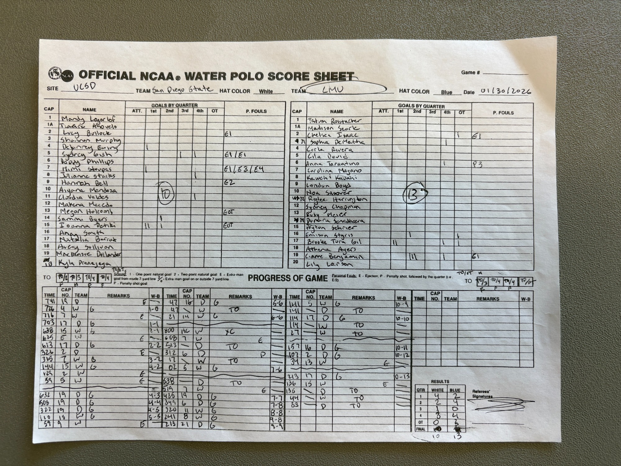 1:20 PM 5: Loyola Marymount 13 vs. San Diego State 10 Scoresheet