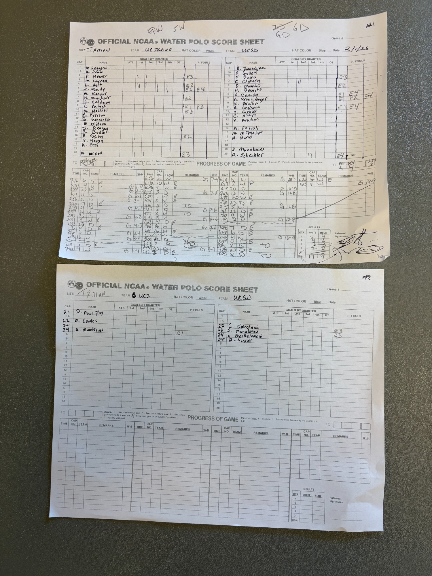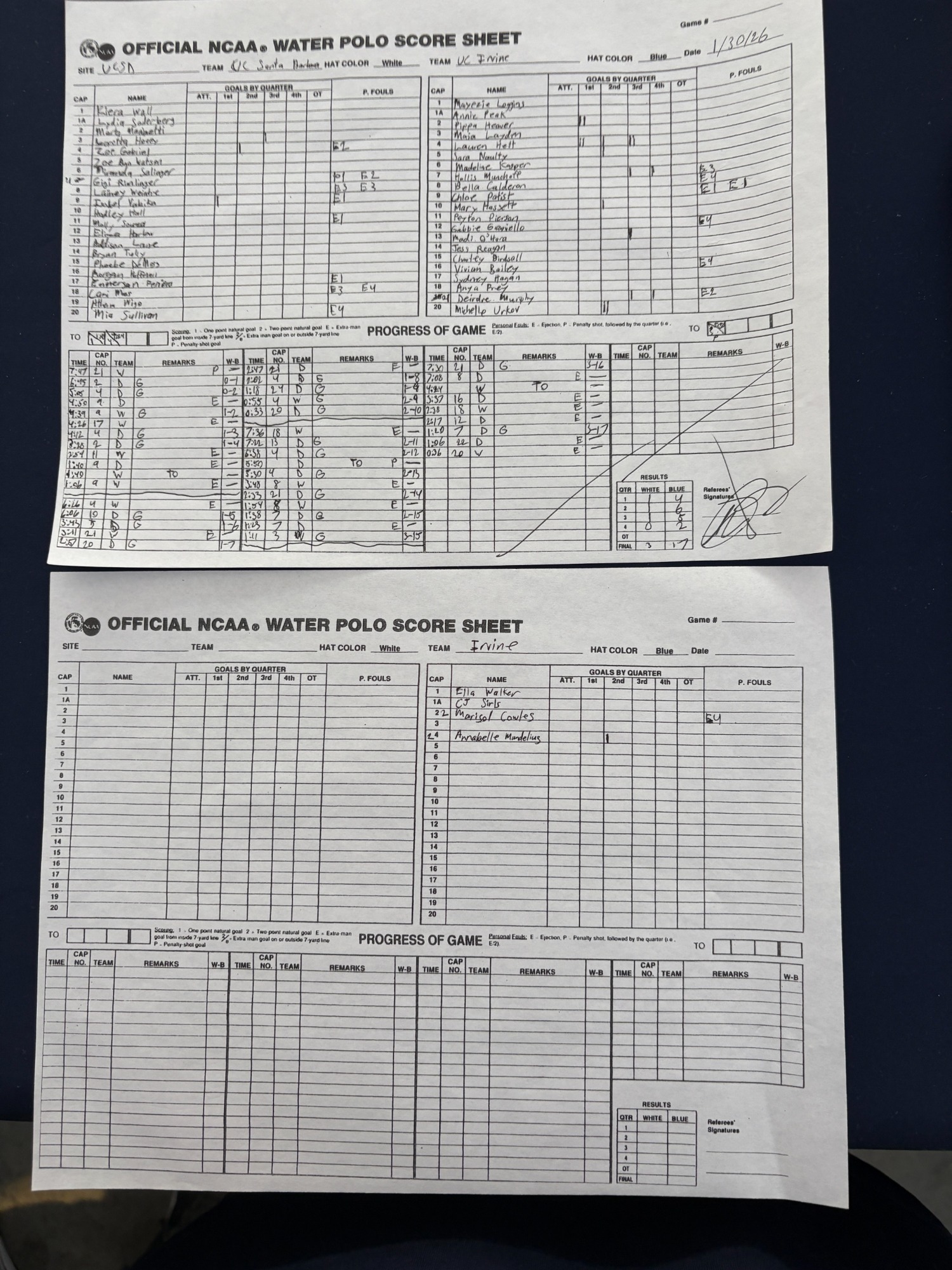 4 PM 7: UC Irvine 17 vs. UC Santa Barbara 3 Scoresheet