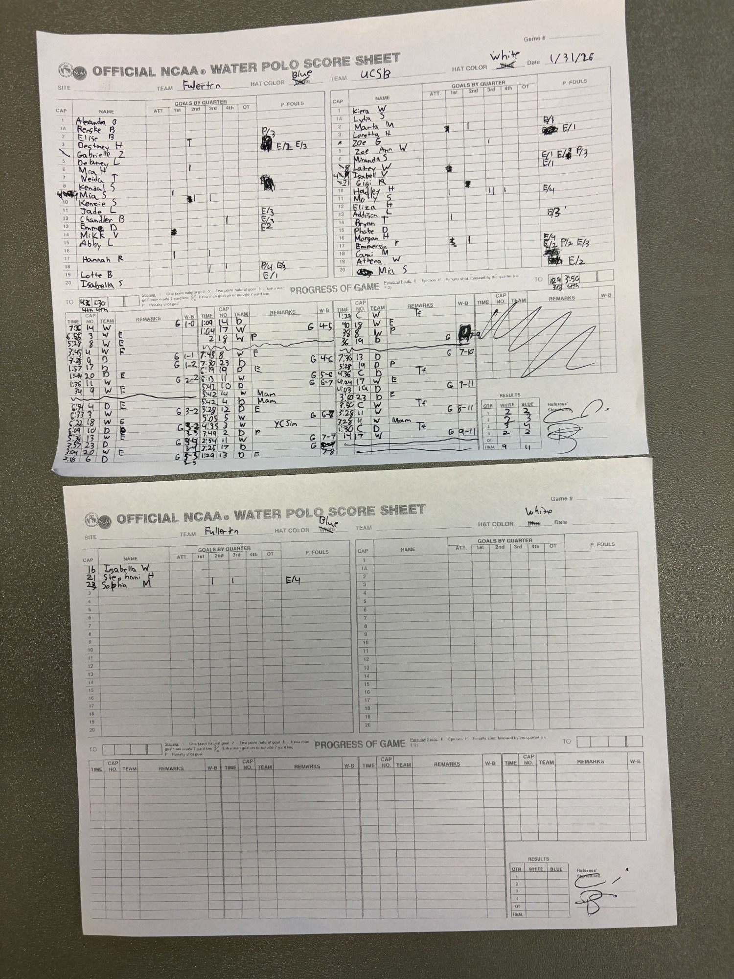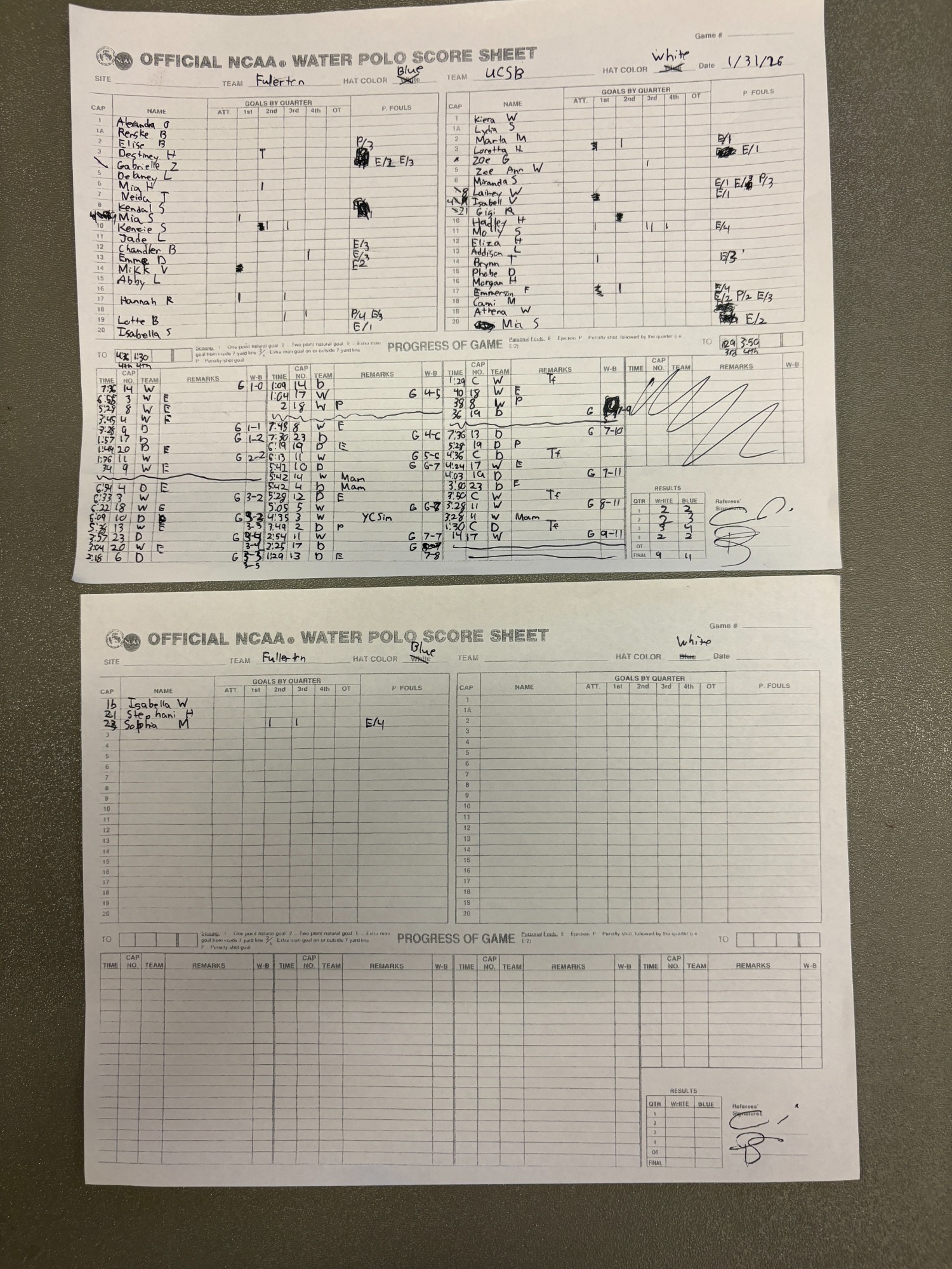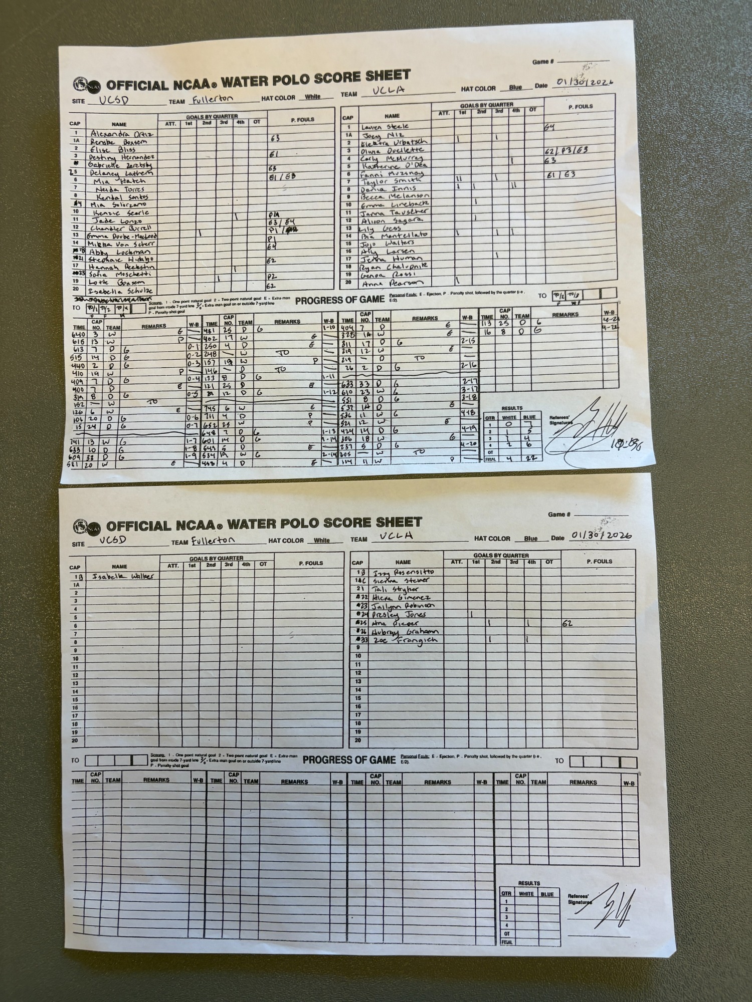 9:20 AM 2: UCLA 22 vs. Cal State Fullerton 4 Scoresheet