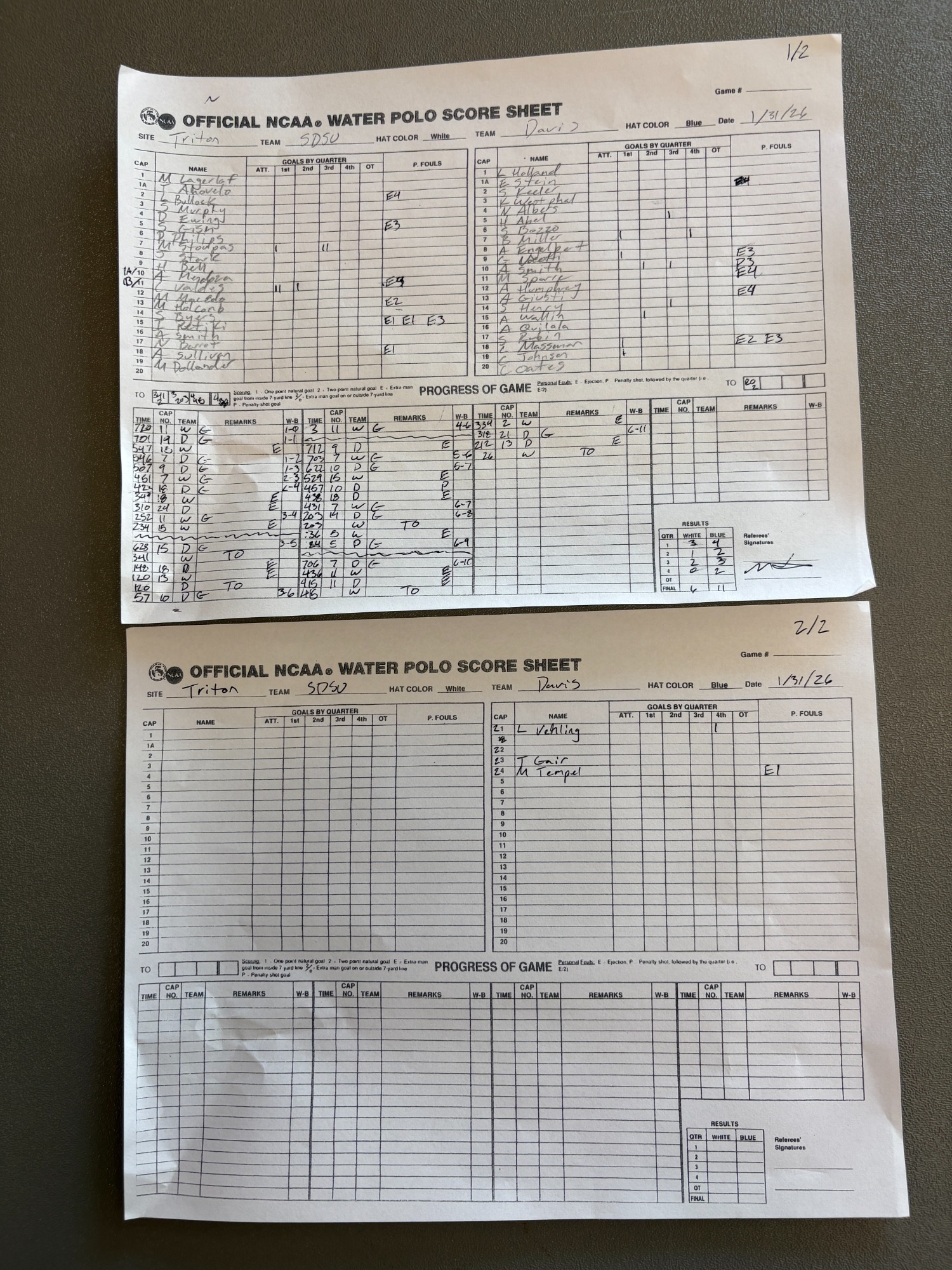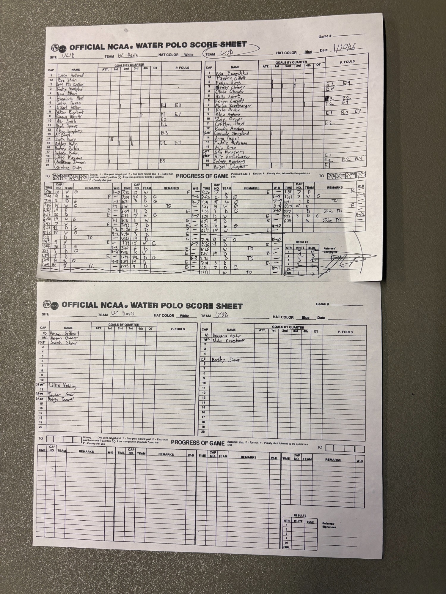 1:50 PM 17: UC Davis 11 vs. San Diego State 6 (9-12) Scoresheet