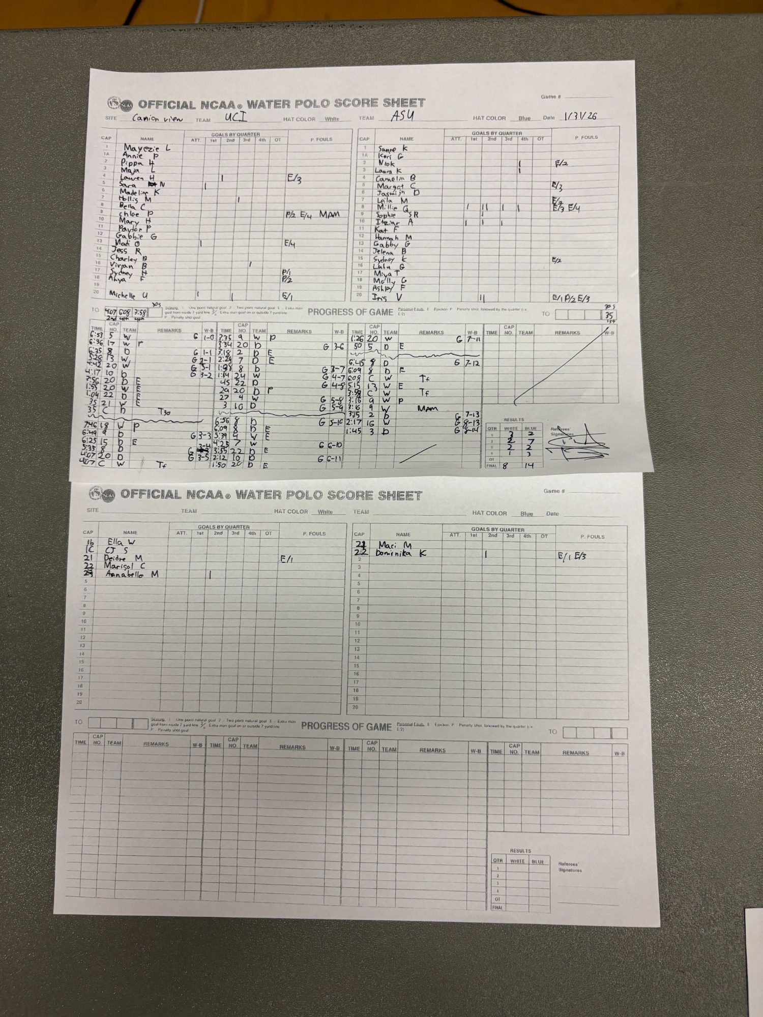 5:20 PM 24: Arizona State 14 vs. UC Irvine 8 (5-8) Scoresheet