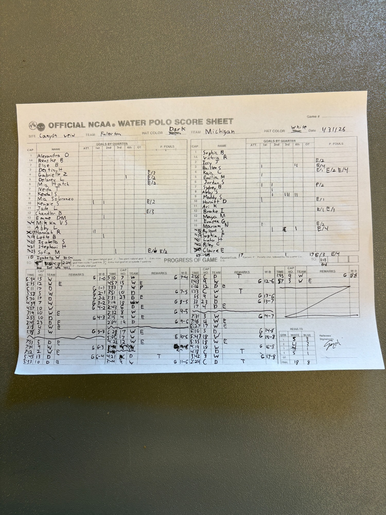 8:00 AM 13: Cal State Fullerton 8 vs. Michigan 18 Scoresheet