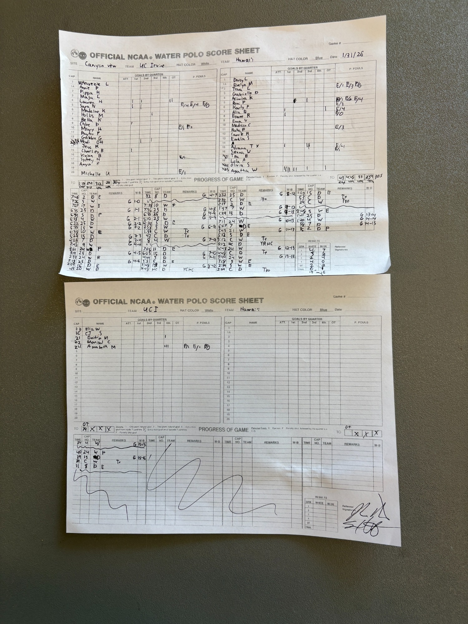 12:00 PM 16: Hawai‘i 16 vs. UC Irvine 15 (OT) Scoresheet