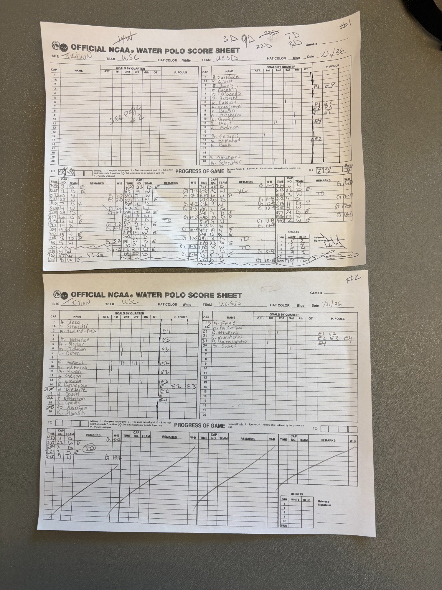 8AM 1: USC 23 vs. Claremont-Mudd-Scripps 4 Scoresheet