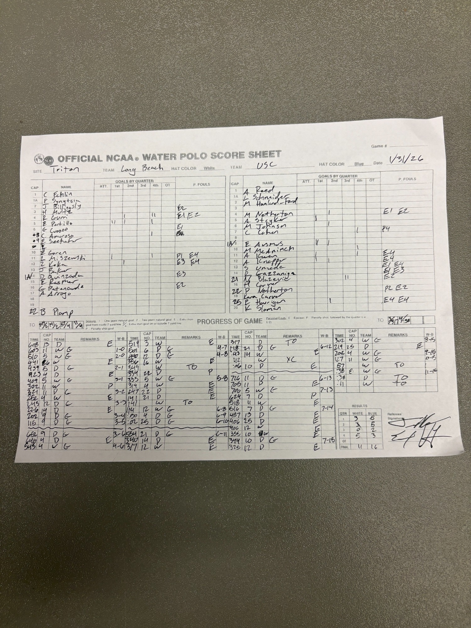 4:30 PM 19: USC 15 vs. Long Beach State 11 (semifinal) Scoresheet