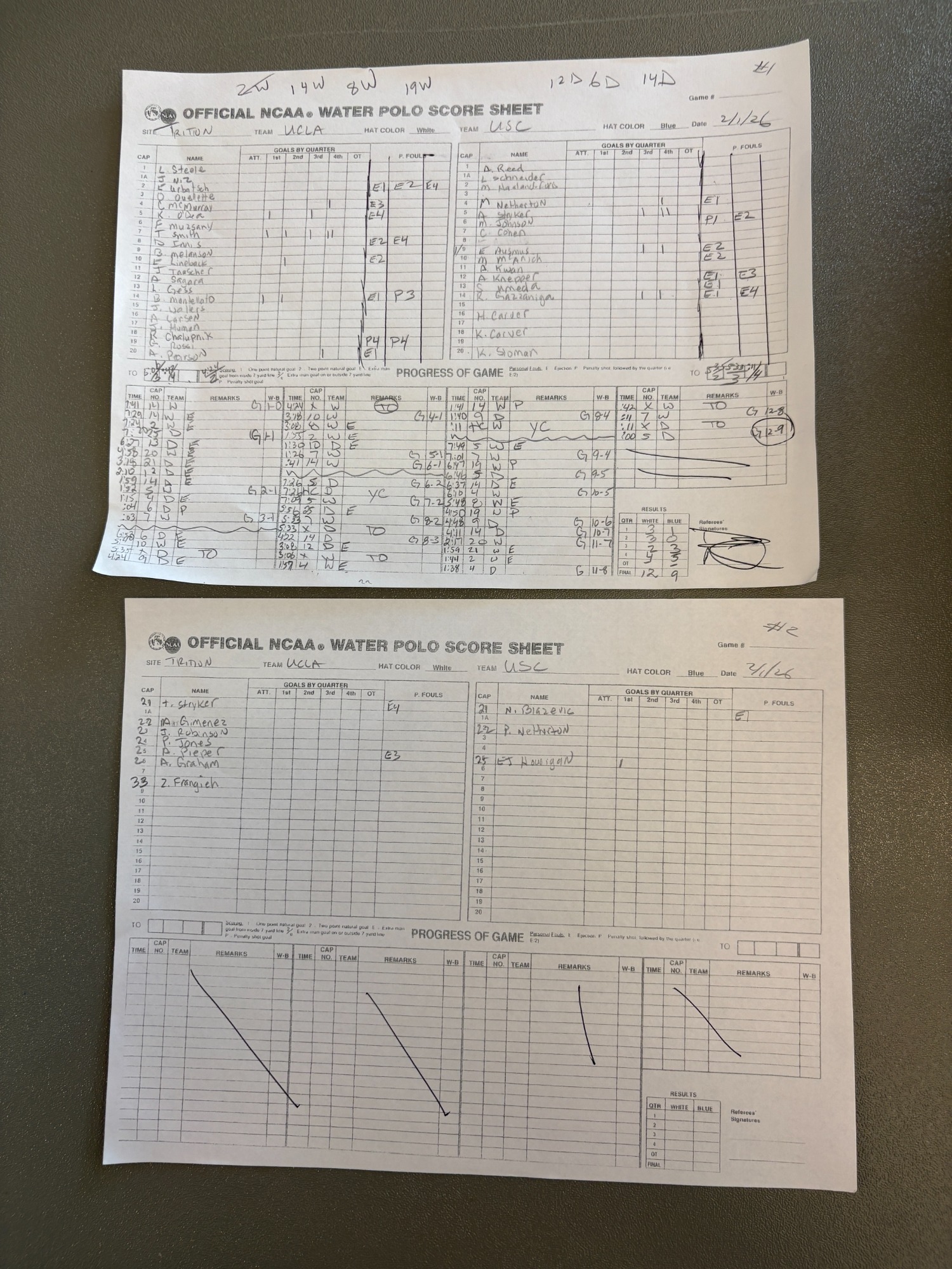 1:30 PM 32: USC 9 vs. UCLA 12 (1st place) Scoresheet